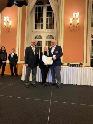 Auch Mitglieder der DLRG Berlin wurden im festlichen Rahmen geehrt. Eine besondere Auszeichnung erhielt Andreas Bläse, dem das Ehrenabzeichen für 50 Jahre treuen und verdienstvollen Dienstes verliehen wurde. Sein außergewöhnliches Engagement über fünf Jahrzehnte hinweg wurde mit großem Respekt und Anerkennung gewürdigt.